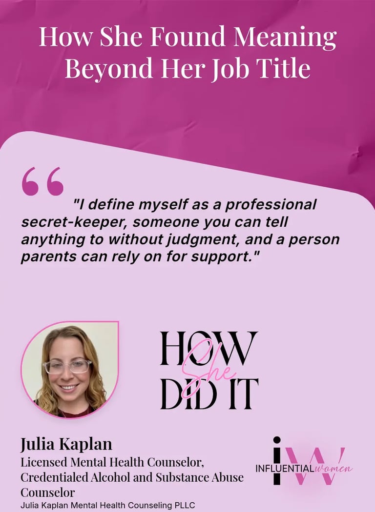 Welcome to my practice! I am a New York State Licensed Mental Health Counselor (LMHC) and a Credentialed Alcohol and Substance Abuse Counselor (CASAC). I received my education from Adelphi University and completed my graduate degree with a Master of Arts in Mental Health Counseling.